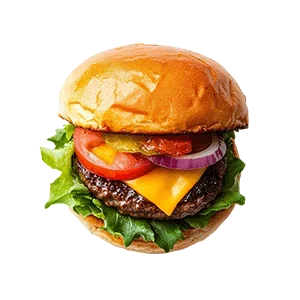 Högrev, ost, bacon, ägg, lök, tomat